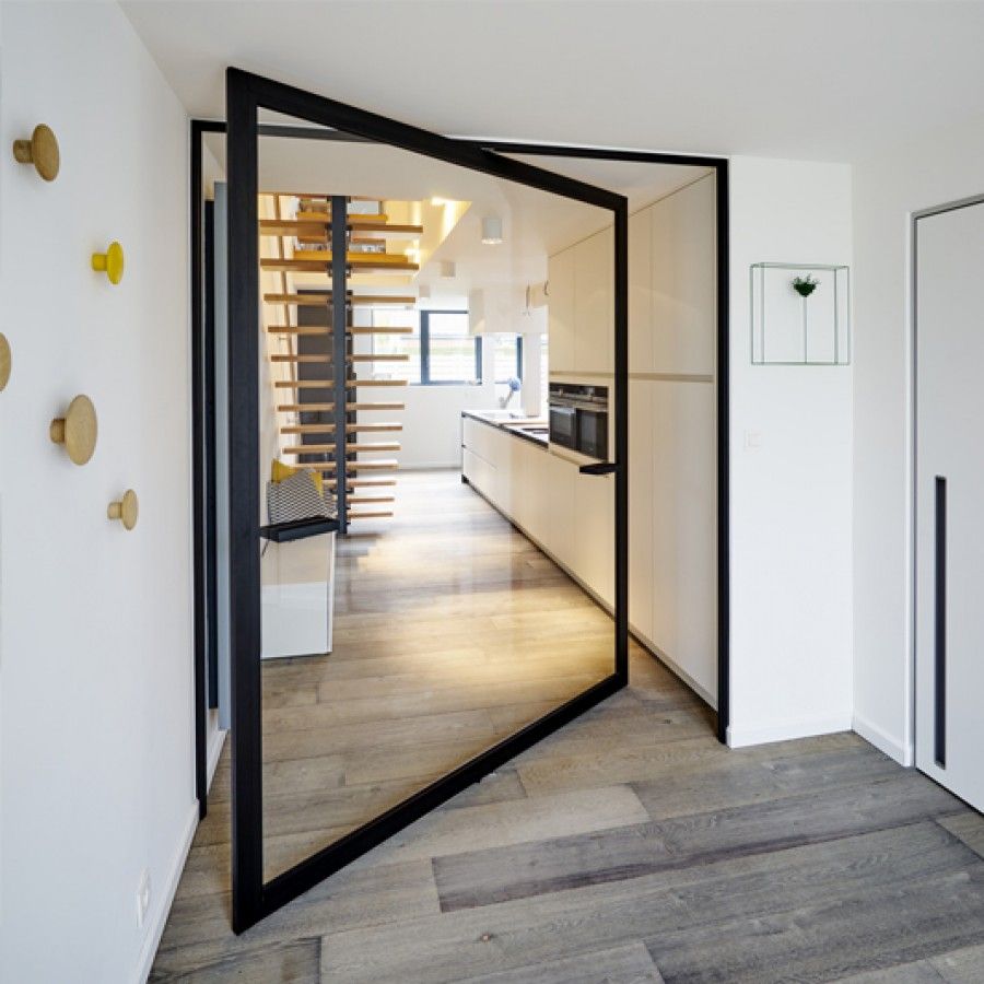 De aluminium taatsdeuren van Boer Kozijnen zijn een elegante oplossing voor moderne interieurs. Deze deuren draaien om hun verticale as en kunnen naar beide zijden openen, zonder vloerveer of inbouwelementen. Ze zijn daardoor eenvoudig te plaatsen tussen vrijwel elke vloer en plafond. Bij ons vindt u aluminium taatsdeur die wij voor u op maat maken.